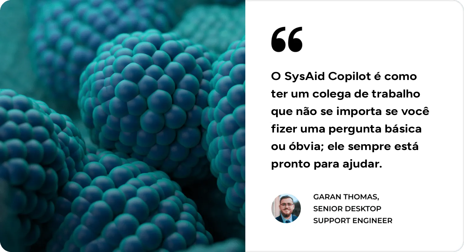 O SysAid Copilot é o novo melhor aliado da sua equipe. Com IA generativa, ele aumenta a eficiência, reduz drasticamente o tempo de resolução e elimina tarefas repetitivas.