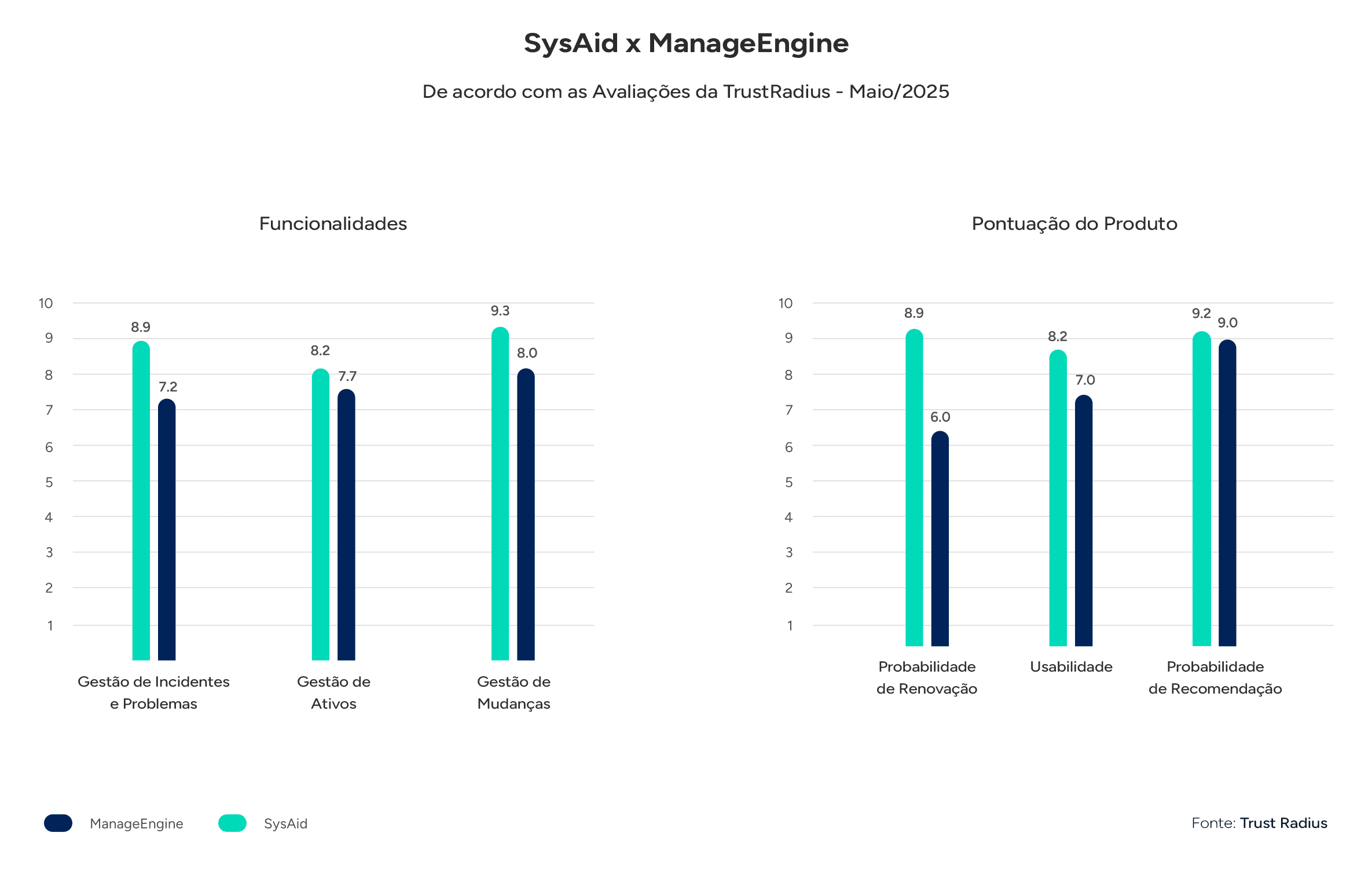 Por que escolher o SysAid no lugar do ManageEngine?